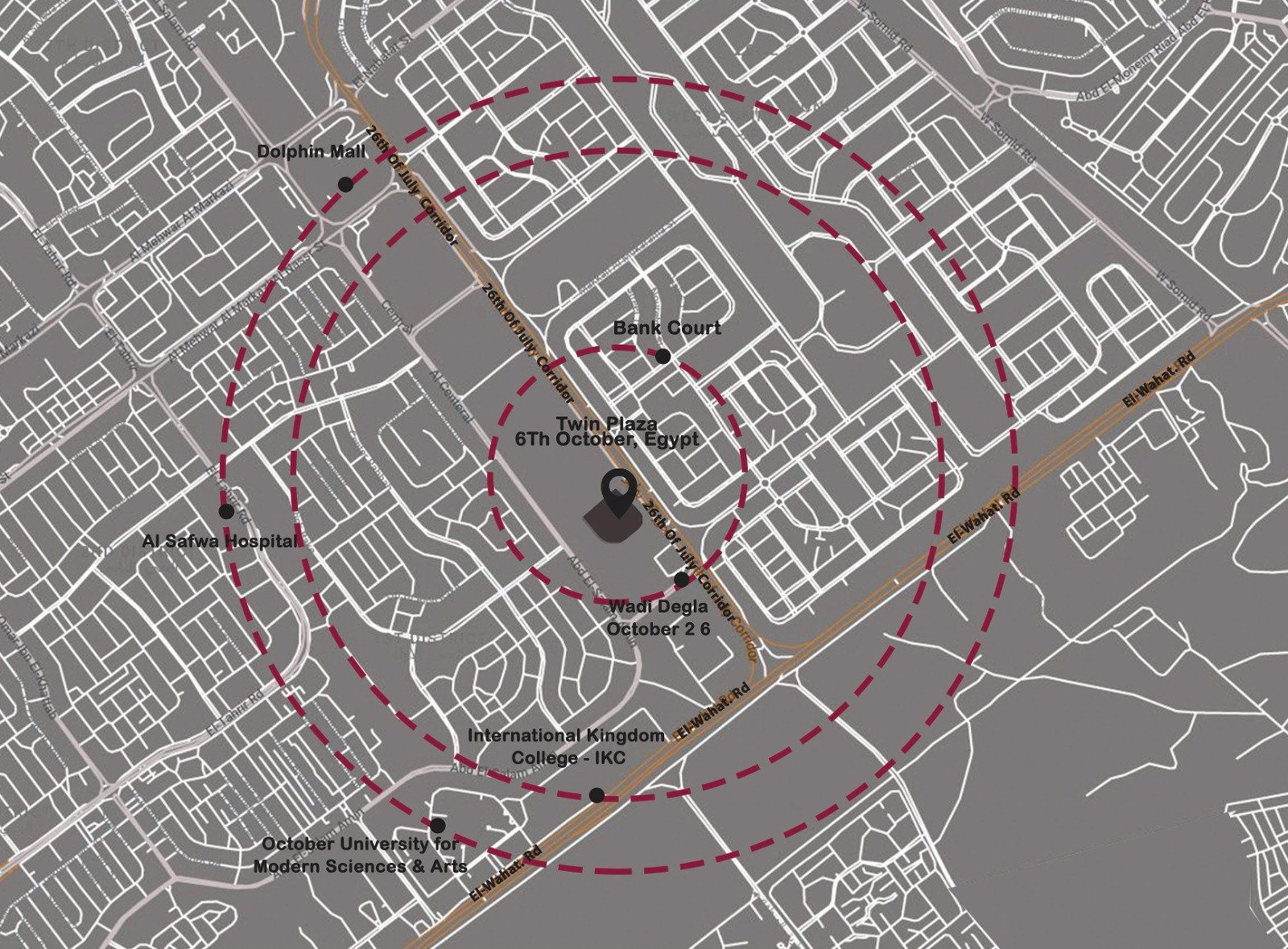 Twin Plaza Twin Plaza Mall is perfectly situated in 6th of October City, one of Egypt’s premier destinations for both leisure and investment. This prime location offers an unparalleled experience, combining the vibrancy of the area with outstanding investment potential, ensuring a unique blend of lifestyle and opportunity. 5 Minutes to Wadi Degla Sports Club and Bank court. 5 Minutes to MSA University. 7 Minutes to Dolphin Mall and Al-Safwa hospital. 8 Minutes to IKC. In one of the most powerful commercial districts in 6th of October City.